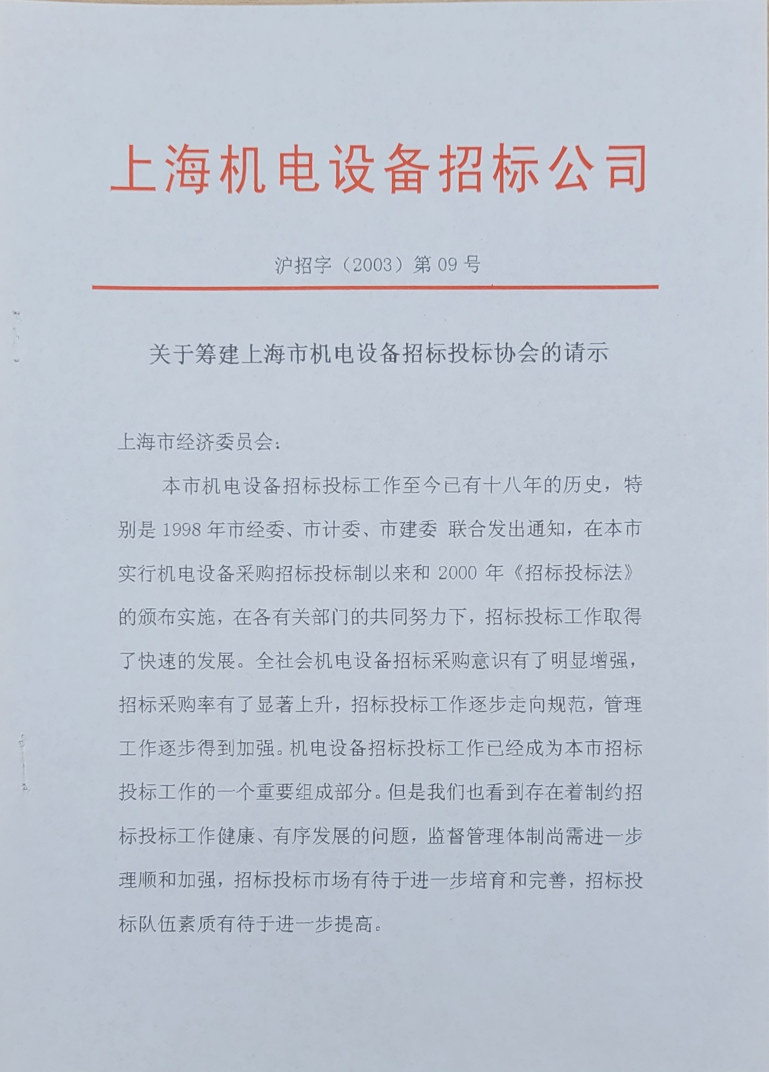 參與籌建上海市機(jī)電設(shè)備招標(biāo)投標(biāo)協(xié)會(huì),并擔(dān)任首屆理事長單位。