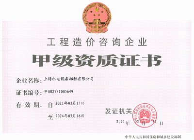 上海市住建委授予《工程造價(jià)咨詢企業(yè)資質(zhì)證書》,拓寬業(yè)務(wù)領(lǐng)域,實(shí)現(xiàn)了服務(wù)鏈的進(jìn)一步延伸。