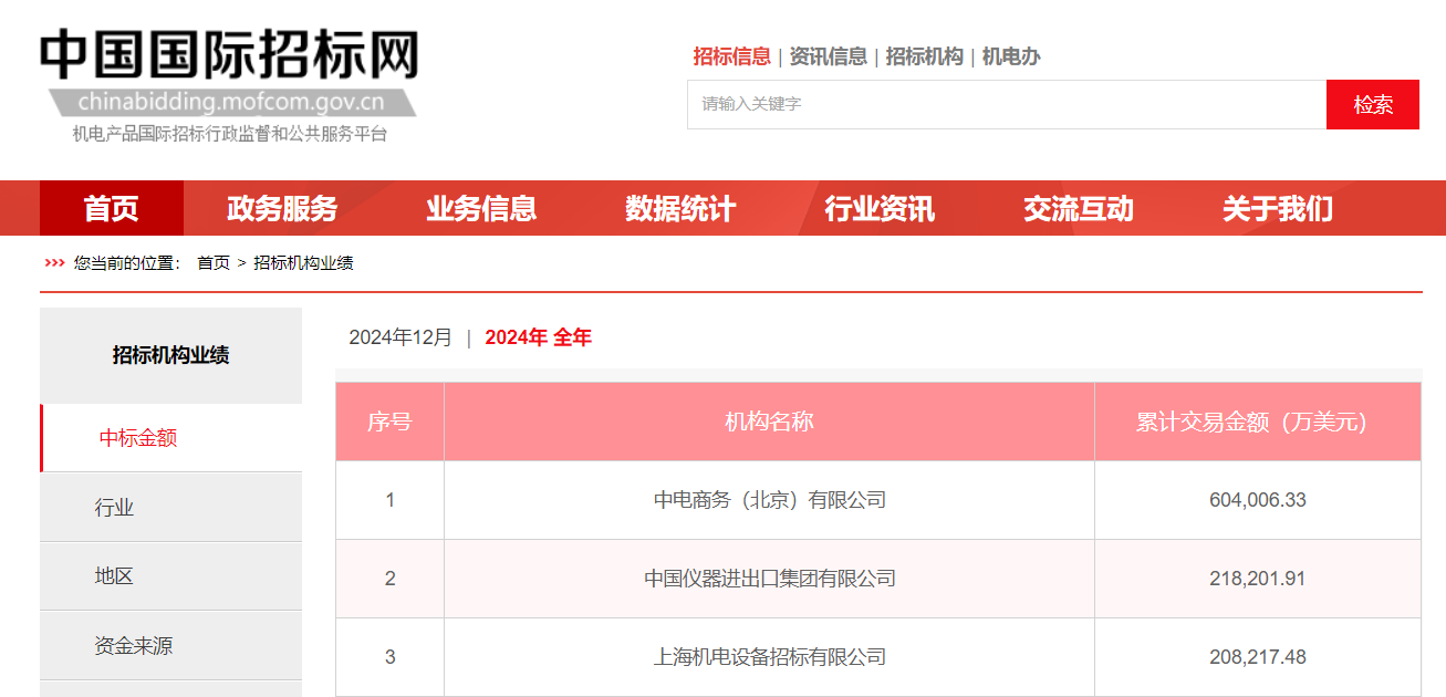 穩(wěn)健發(fā)展 再續(xù)佳績(jī) ——機(jī)電招標(biāo)公司榮膺2024年國(guó)際招標(biāo)業(yè)績(jī)?nèi)珖?guó)前三